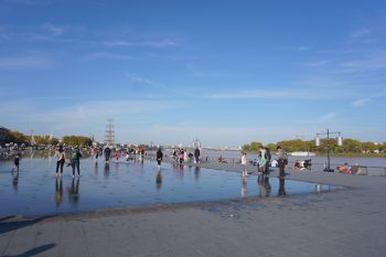水深5cmもないくらいのごく浅い、広〜いプールのような噴水池。