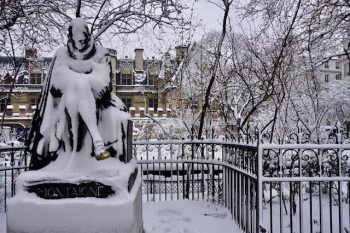 モンテーニュさん(フランス、ルネサンス期の哲学者)も雪被ってます。
