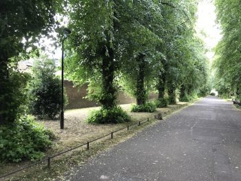 アプローチの一角はライムツリーの古木の並木道。