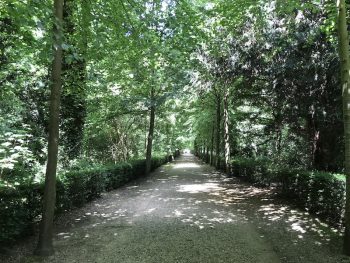 足元はツゲの刈込みで整えられたライムツリーの並木。