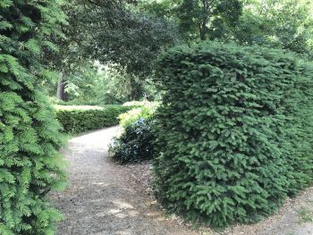 こちらは腰の高さくらいの低いイチイの生垣がダブルであって