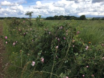 ロサ・ケンティフォリアとシュロと呼ばれていた花木の花。