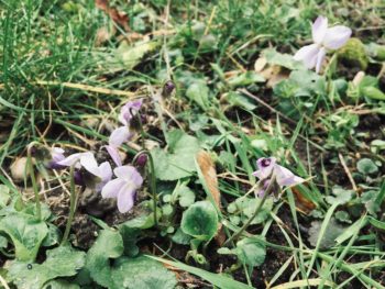 ちっちゃなスミレ(violette、学名ではスミレ属viola)たちが健気に咲いています。