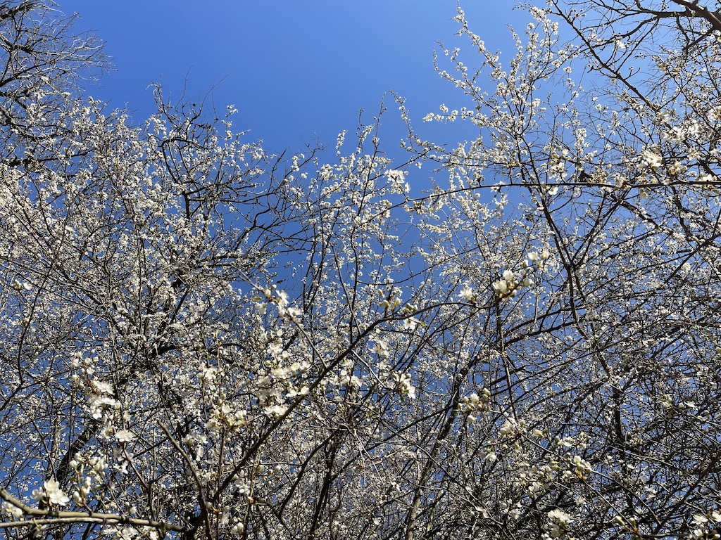 春一番のスモモの木の花