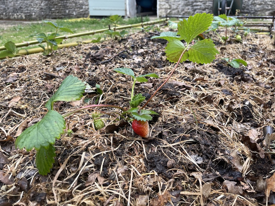 イチゴも一日に2−3個づつ、食べられるほどに熟しています。
