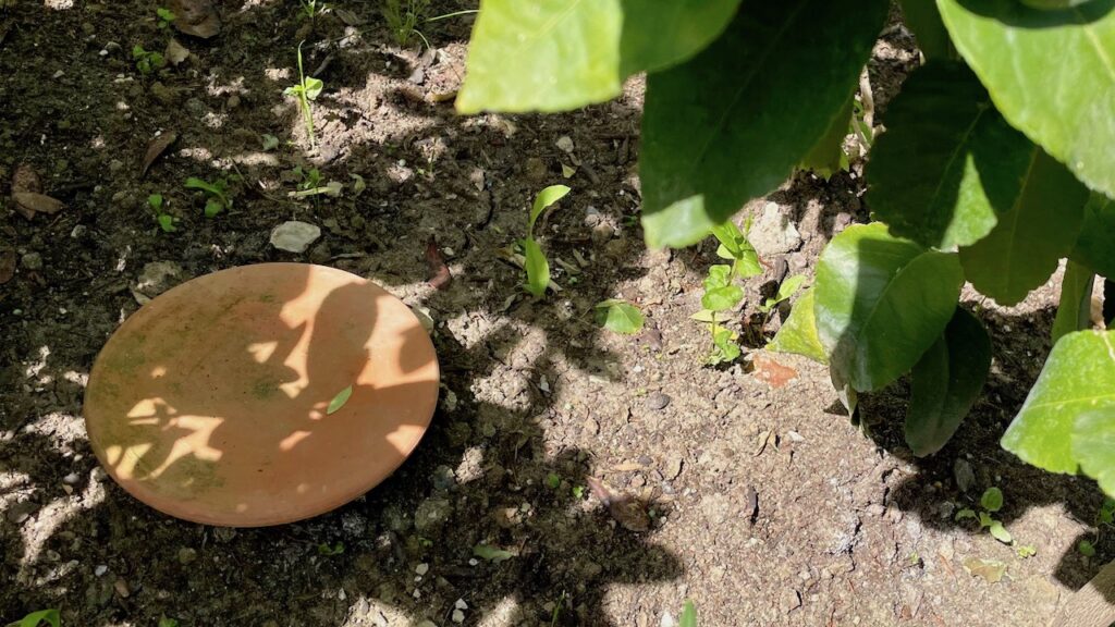 ディテールにも様々な工夫があり、これは他のガーデンのものですが、オヤ(Oya)と呼ばれる素焼きの壷です。土中に埋めて水を入れておくことで、周りの土が乾くとゆっくりと中の水が外に浸出して、緩やかな水やりができるというエコなガーデニング・グッズです。水場が遠い場所に若木を植えた時にも便利です。最近はパリのインテリアショップなどでもカラフルな小さなオヤが並んでいます。素焼きの表面から水がゆっくり浸出していくという原理が大事なので、わざわざ買わなくても既存の素焼きの植木鉢などでも応用もできそうなのがまた嬉しい。