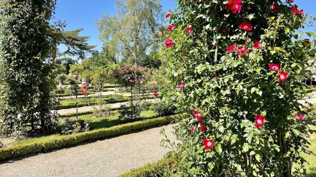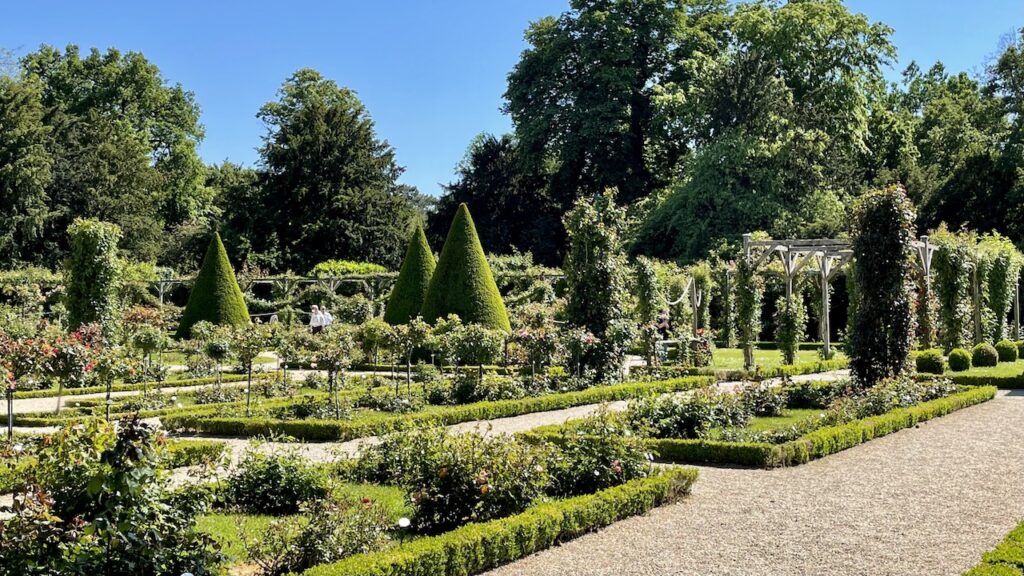 コンクールの会場となるバガテルのバラ園の様子。コンクールの新種モダン・ローズだけでなく、膨大なバラのコレクションが咲き乱れるフォーマル・ガーデン。