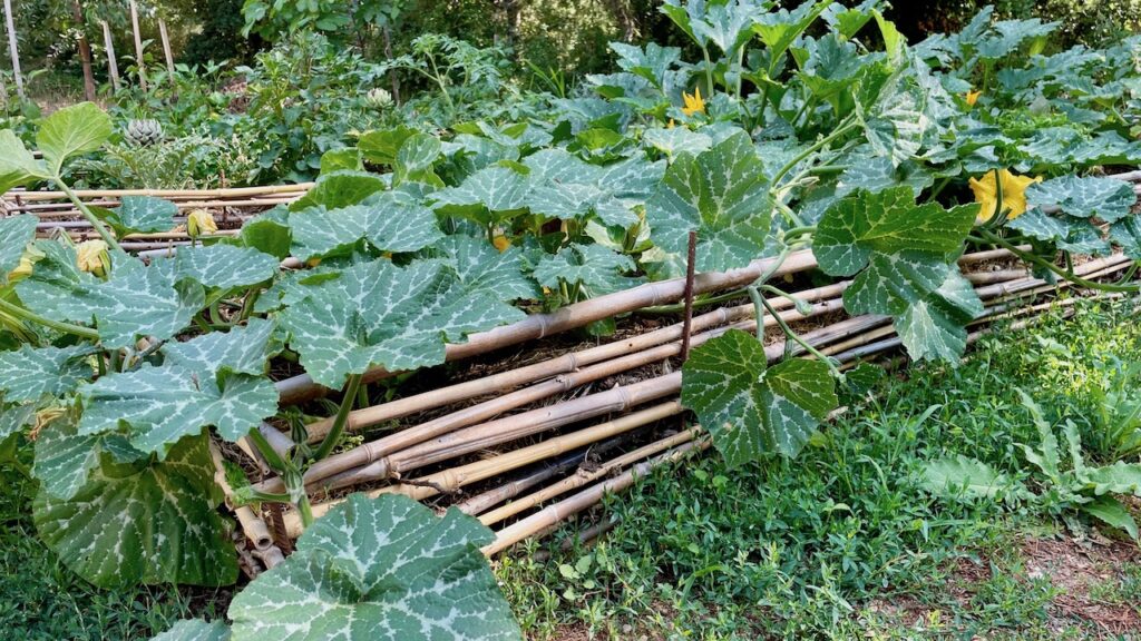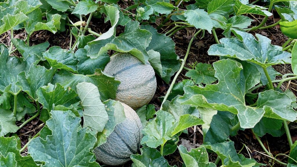 特にズッキーニ、メロン関係は溢れんばかりに縦横に伸びています。