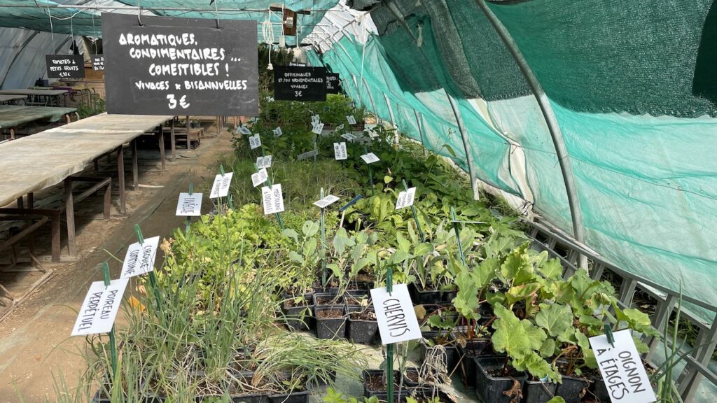 その雰囲気通り、すでに30年以上前からの種子を採取するためのポタジェがあり、農家風の建物では、アグロエコロジーに沿った方法で、すべて手作業で栽培・採取された種子が売られています。F1ではない在来種・固有種の種子へのこだわりは、最近はエコロジー意識の高い人々にとっては一般的になってきて、インターネットなどでも気軽に入手できるようになって来ました。それを、ひっそり30年以上前からやっているポタジェに出会えたのはちょっと嬉しい発見です。