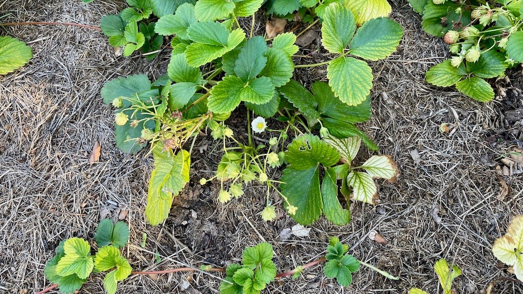 ランナーから伸びた新しい株は、しっかり根付いたら親元からのランナーを切ります。