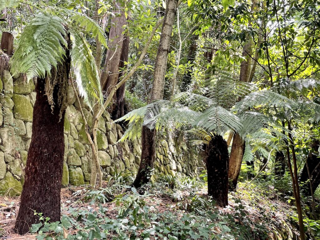 天井にも、周りにも、気がつくとそれぞれに個性的な様々な木々や草花に埋め尽くされる、人間のためというよりも、植物のための庭、のよう。