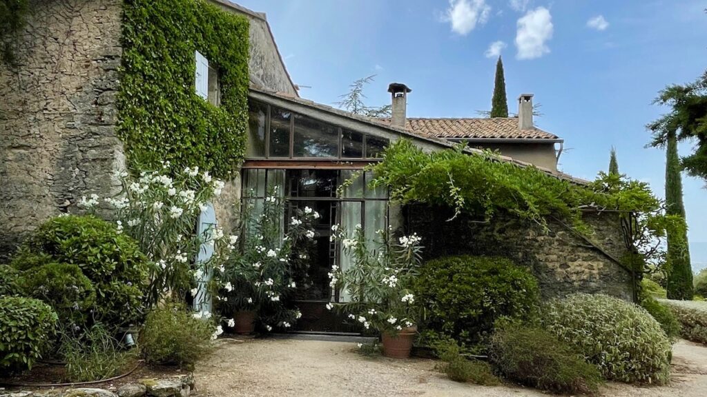 そして、海辺ばかりでなく、南仏プロヴァンスでもやはりキョウチクトウが大活躍。白花をチョイス、また樹形がかなり透かしてあるのが上品な雰囲気で、モダンにリノベーションした石造りの古民家のファサードの感じにもさりげなくよく合っている。