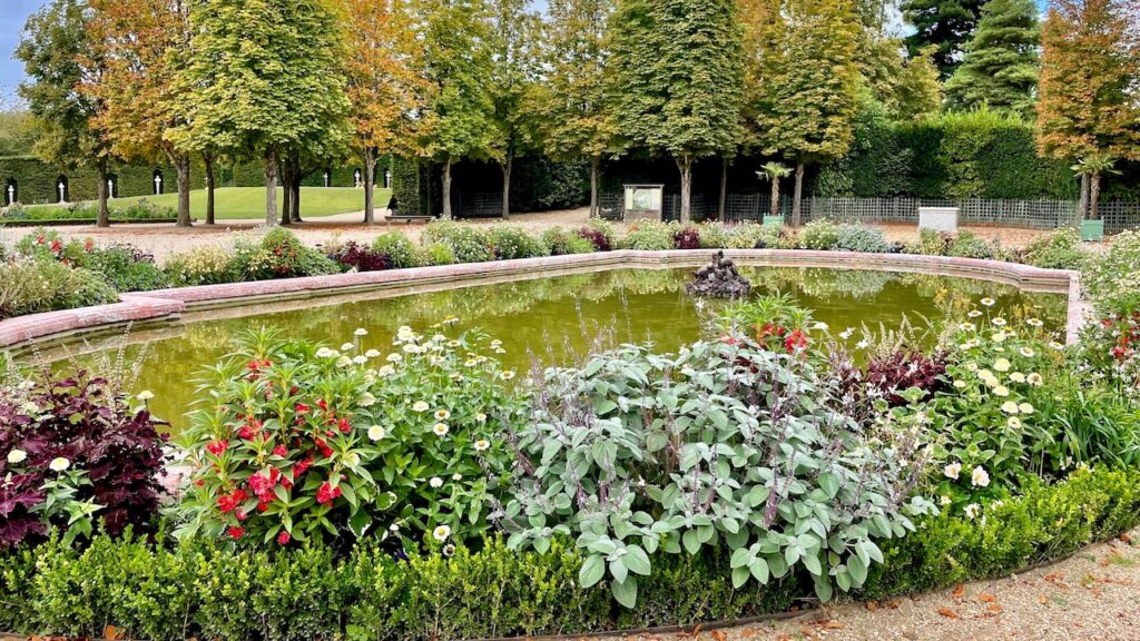 メインの宮殿の庭園との目立った違いは、建物至近のパルテールに、常にこだわりの花いっぱいの植栽がなされていたこと。