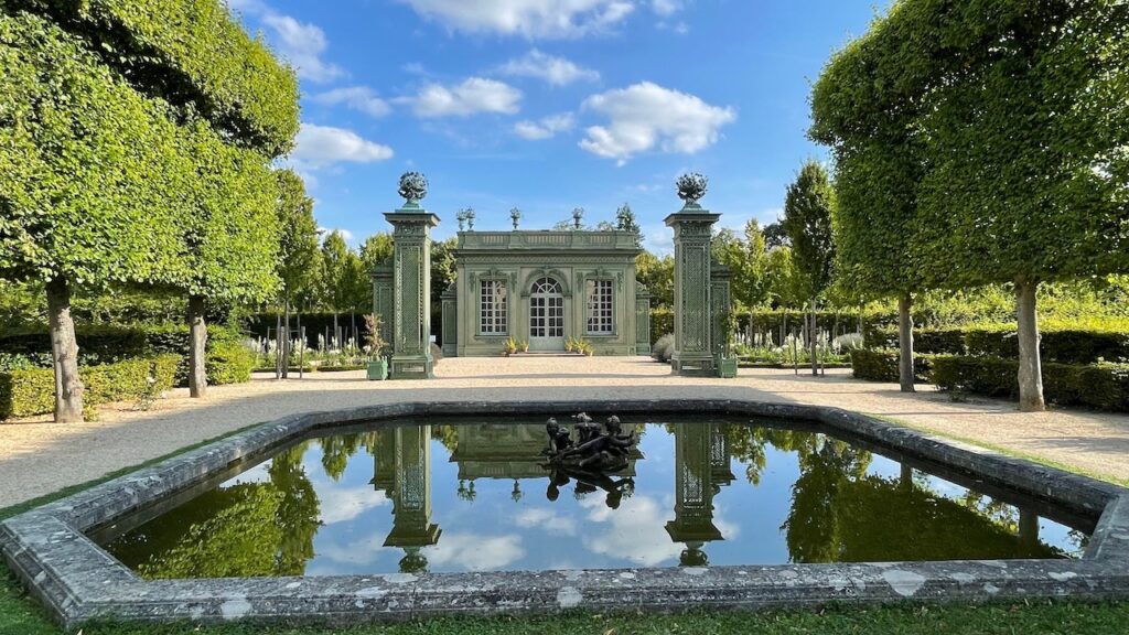 整然と整えられた並木と生垣と花壇、優雅な東屋がポイントのプチトリアノンのフォーマル・ガーデンは、アンチームで優雅な雰囲気と可愛らしいディテールが魅力的です。