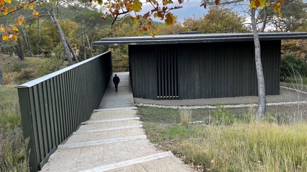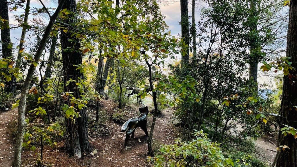所々にラベンダーの植栽など、やはりプロヴァンスらしい花あしらいがあり、ガストロノミーなレストランの食事の前後にもふらっと散策できる整った散策路がありながらも、全体的には自然な林間地帯の良さが保たれた中に、それぞれのアートピースが実に良い具合に収まっている、この非常にバランスよく作り上げられた人工と自然の調和が素晴らしいこのワイナリーの庭、どんな経緯で作られたのかが気になるほど。