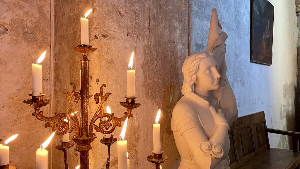片隅にジャンヌダルク像を発見。教会中、全部本物の蝋燭が灯されているのもなんだか感動してしまいます。