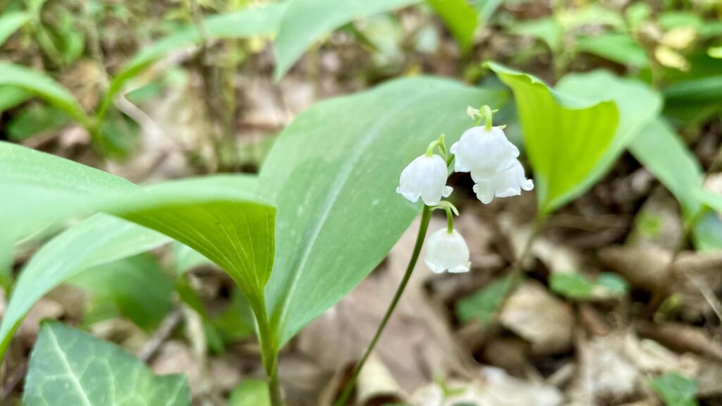 スズランを求めて、どんどん奥に進んでいく、、、だけれどなかなか見つかりません。本当にだいぶ歩き回って、やっと一株の花に遭遇!
