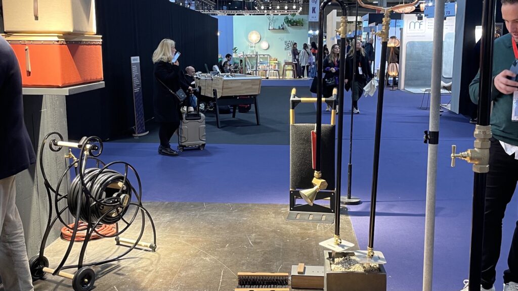 写真が良くないのですが、左手にはもう少し装飾的だけどやはりシックなホースリール、右手はシャワーで、地面に直接ぐっと差し込んで設置できるのもありました。